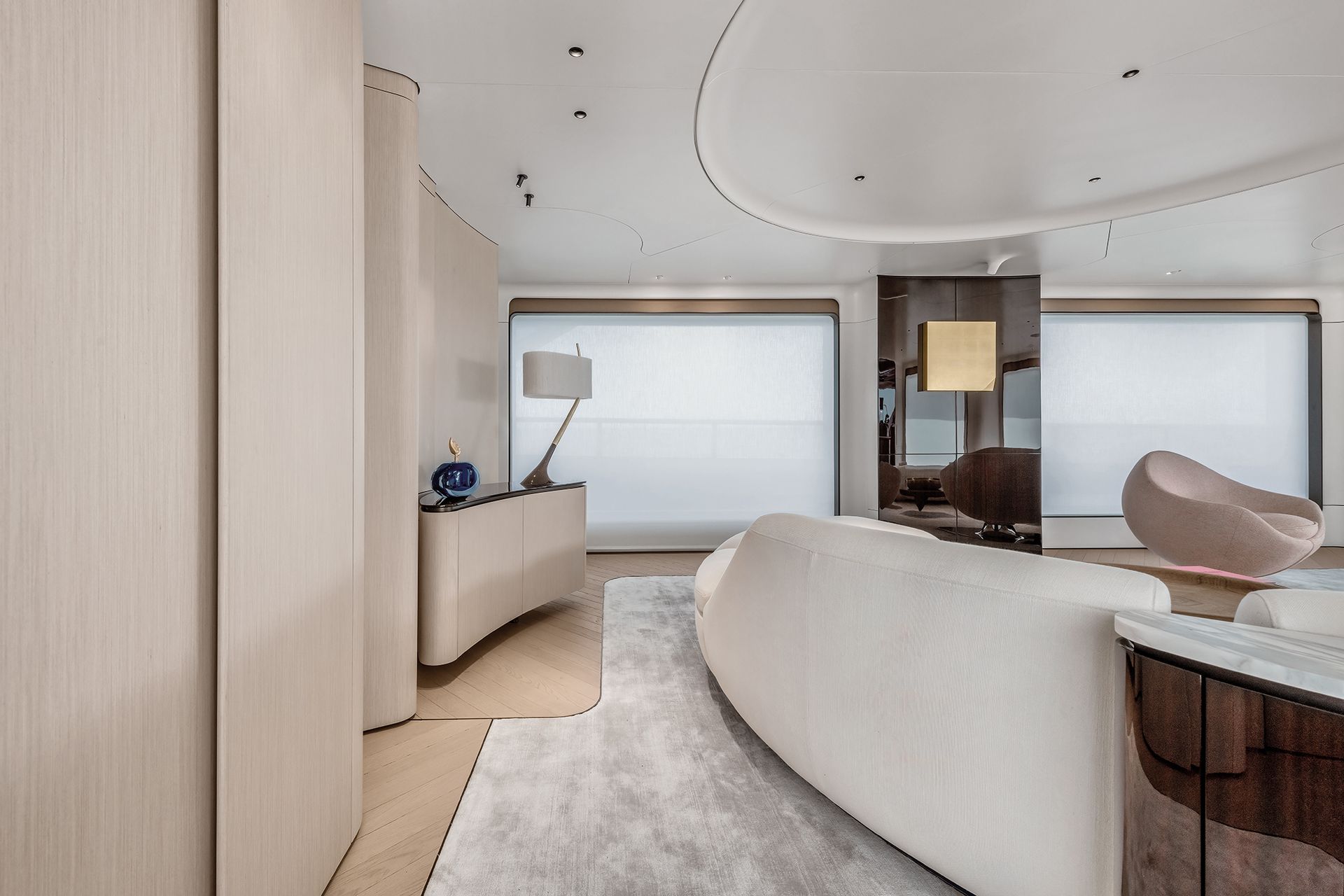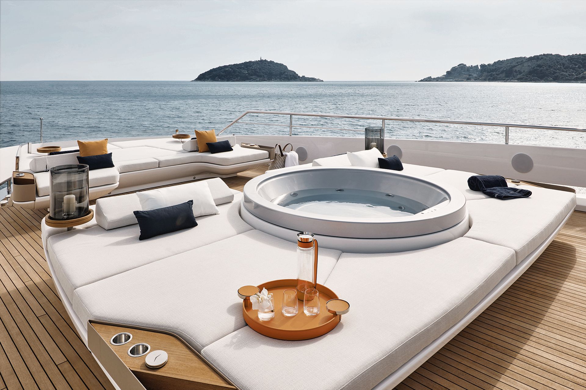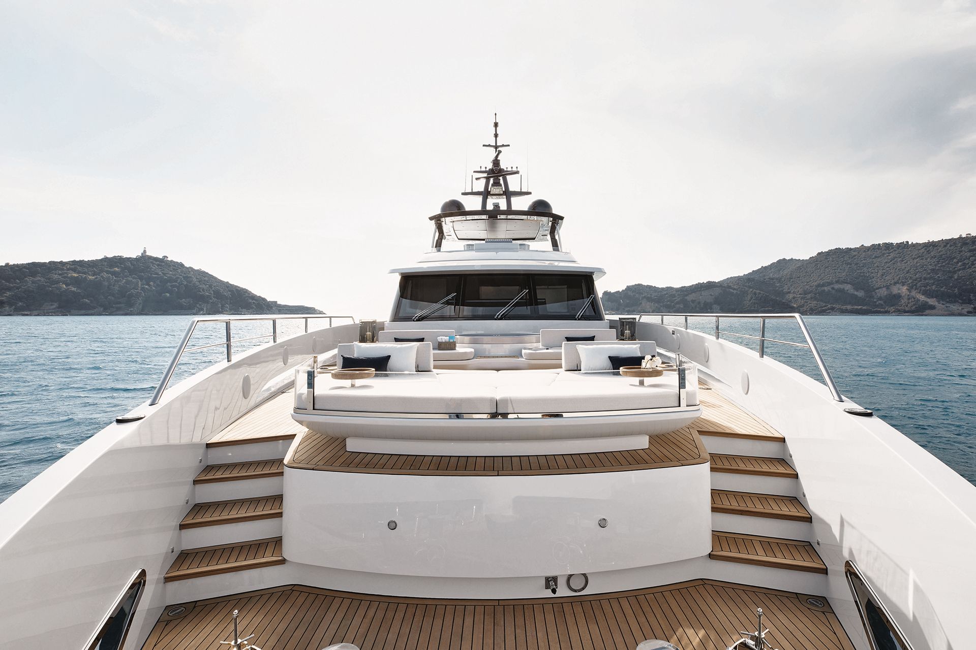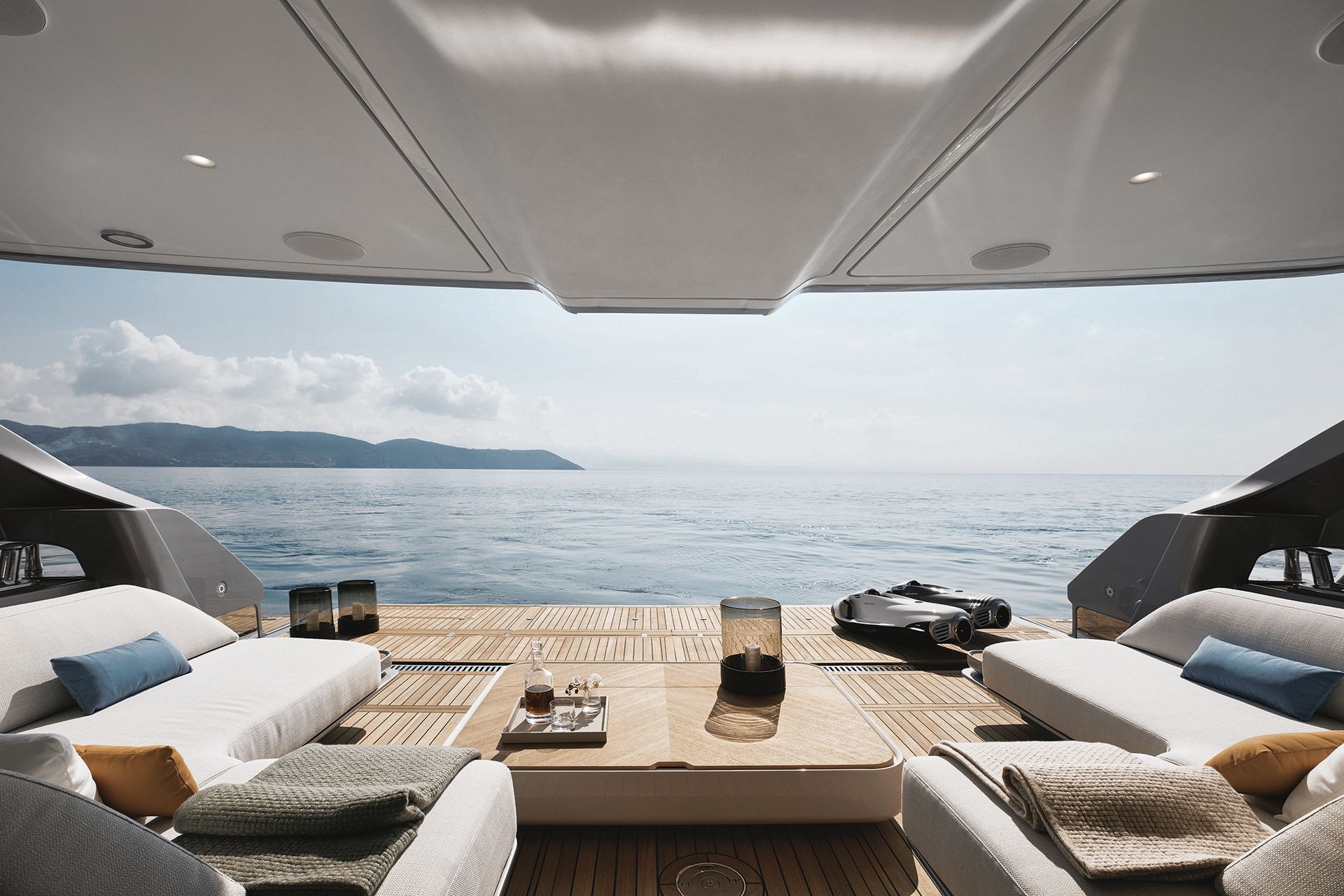 With her original design and modern ethos, the Azimut Grande 36M is a superyacht that synthesizes cutting- edge style and attitude. From the unprecedented semi- walkaround upper deck inspiring freedom of movement to the fully retractable side windows posing a special gateway to the sea, all elements contribute to visually blend interior and exterior spaces. A barrierless lifestyle naturally blurs the boundaries between onboard pleasure and oceanic greatness