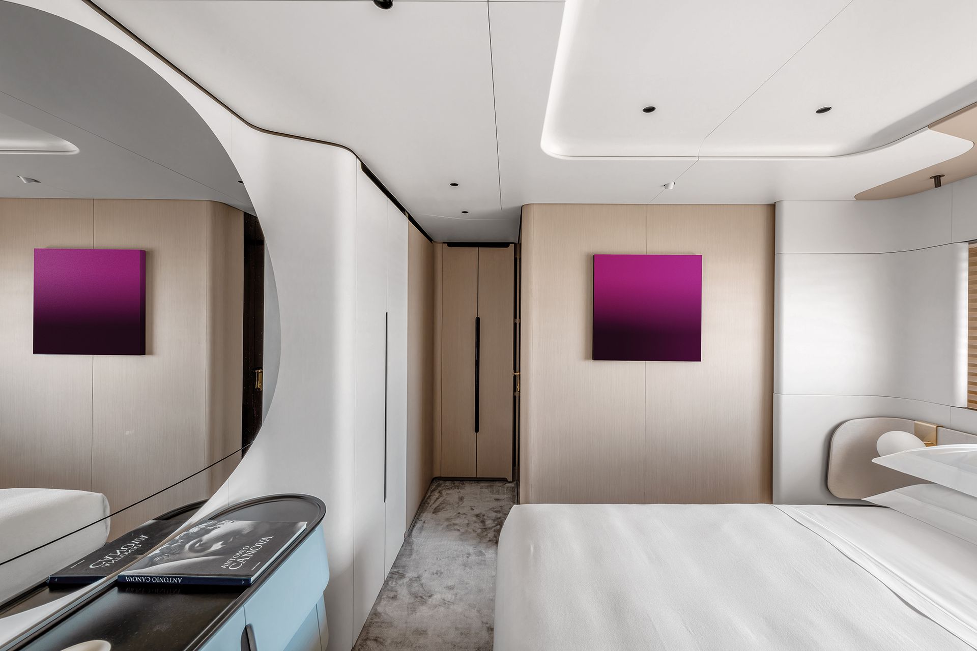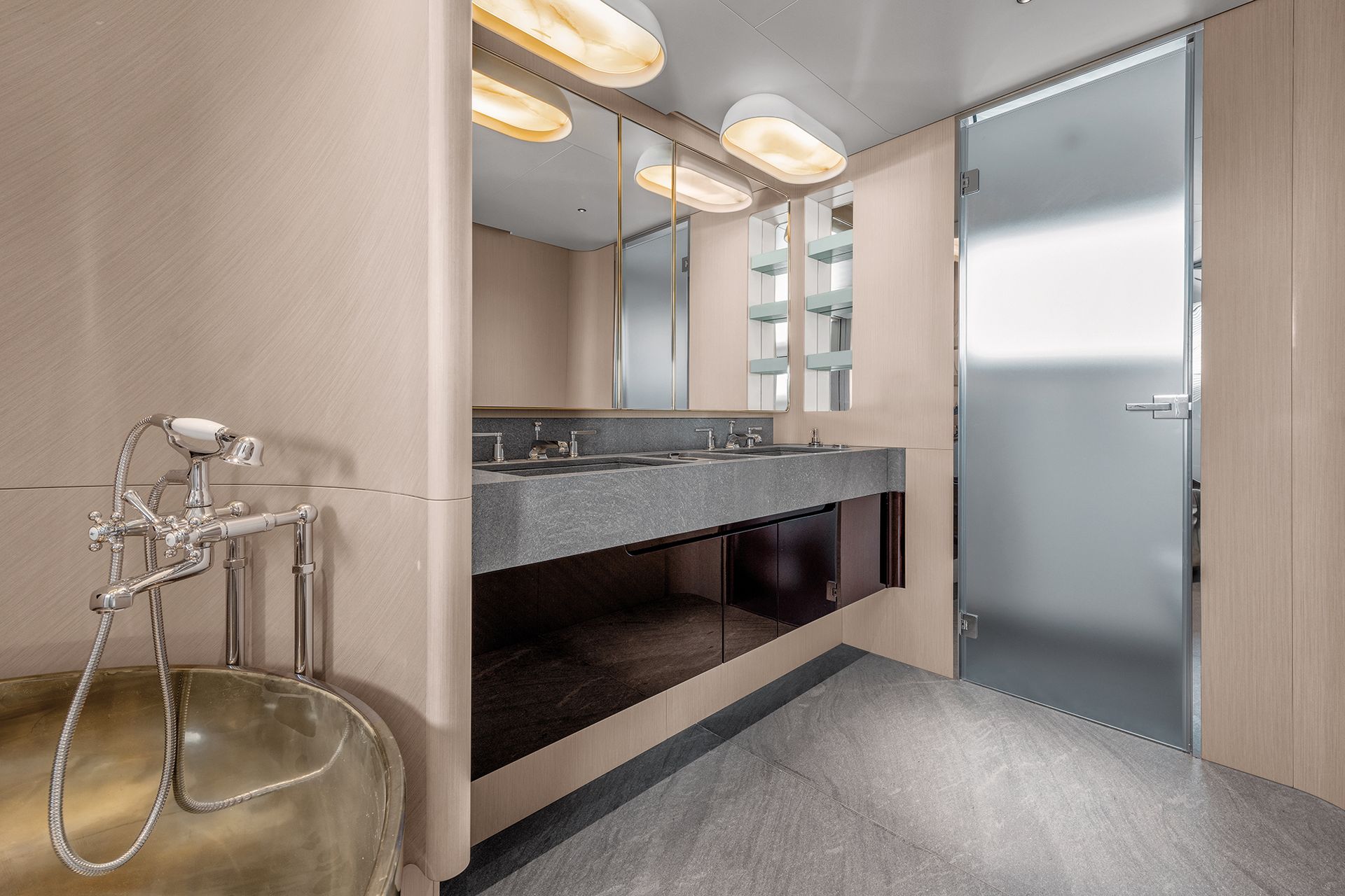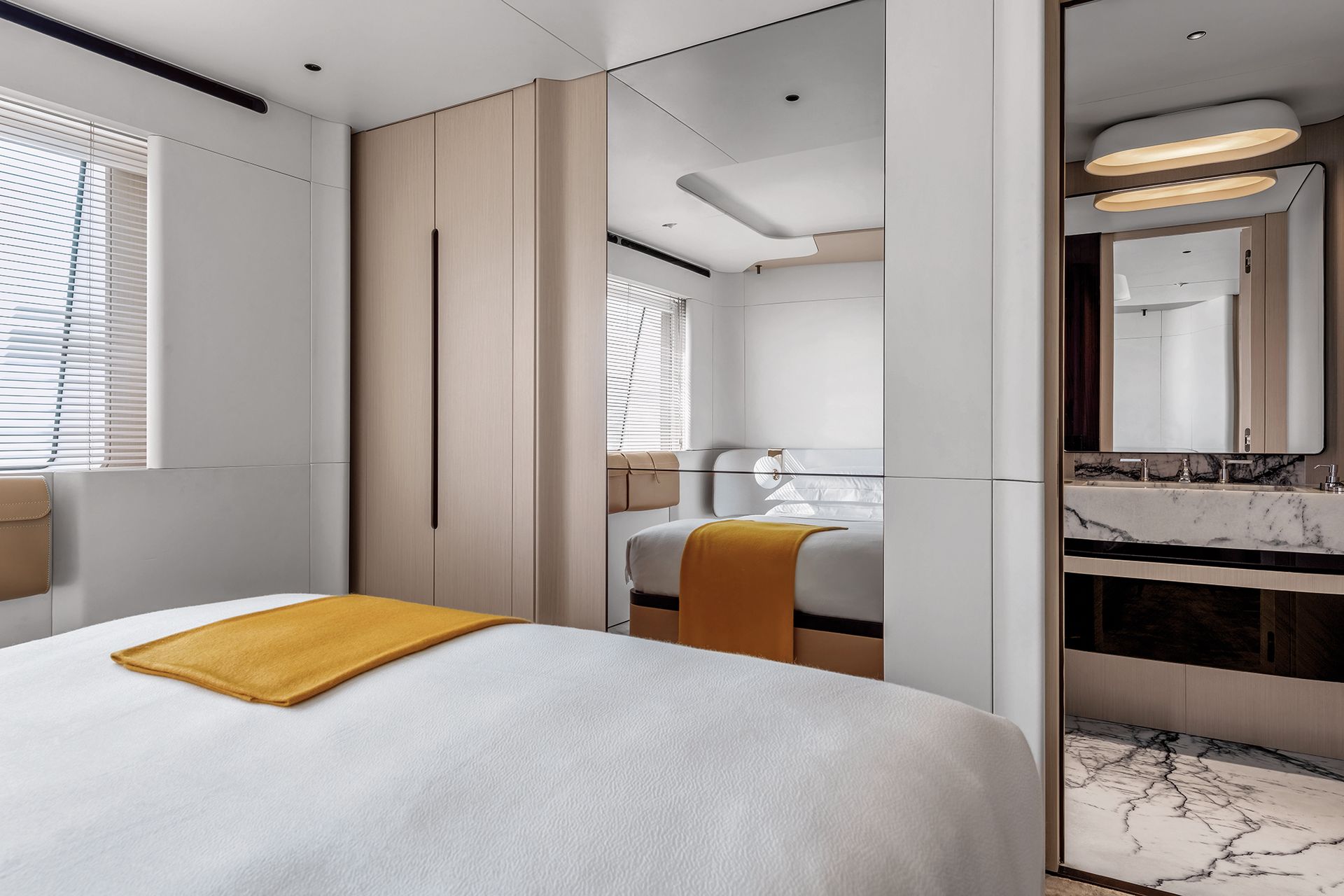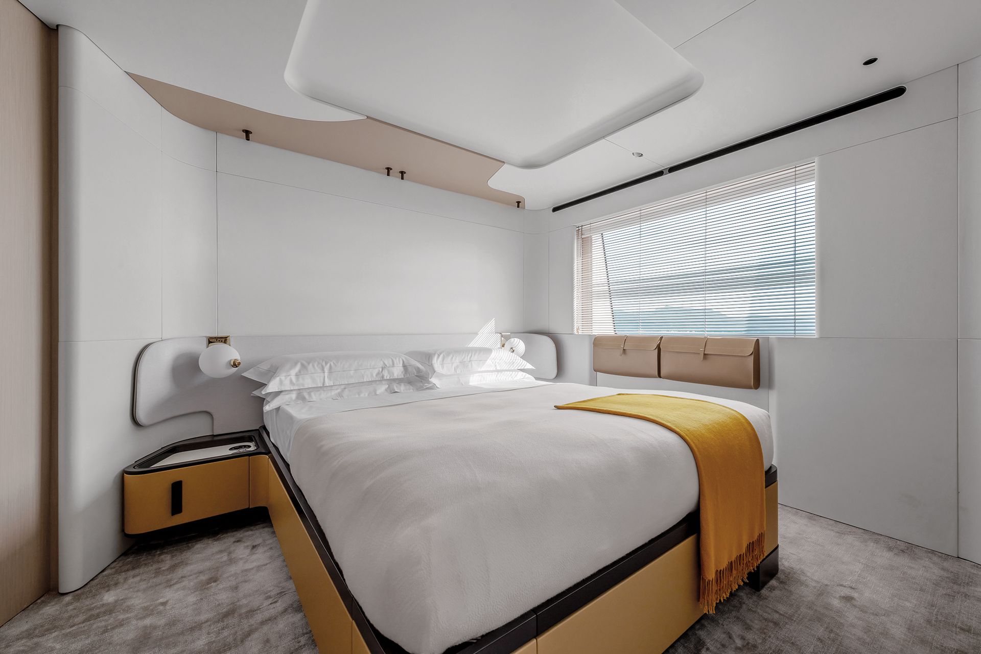 With her original design and modern ethos, the Azimut Grande 36M is a superyacht that synthesizes cutting- edge style and attitude. From the unprecedented semi- walkaround upper deck inspiring freedom of movement to the fully retractable side windows posing a special gateway to the sea, all elements contribute to visually blend interior and exterior spaces. A barrierless lifestyle naturally blurs the boundaries between onboard pleasure and oceanic greatness