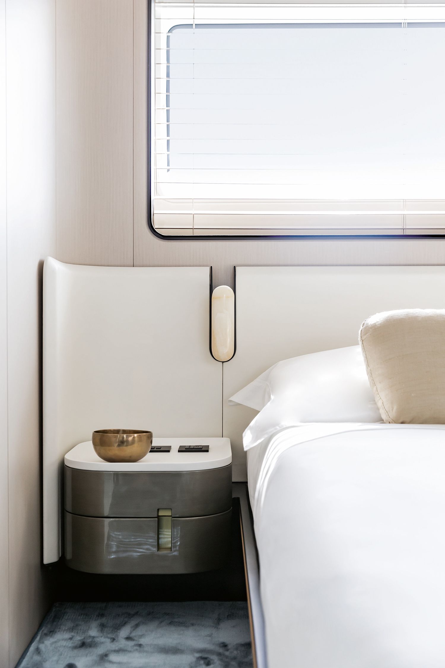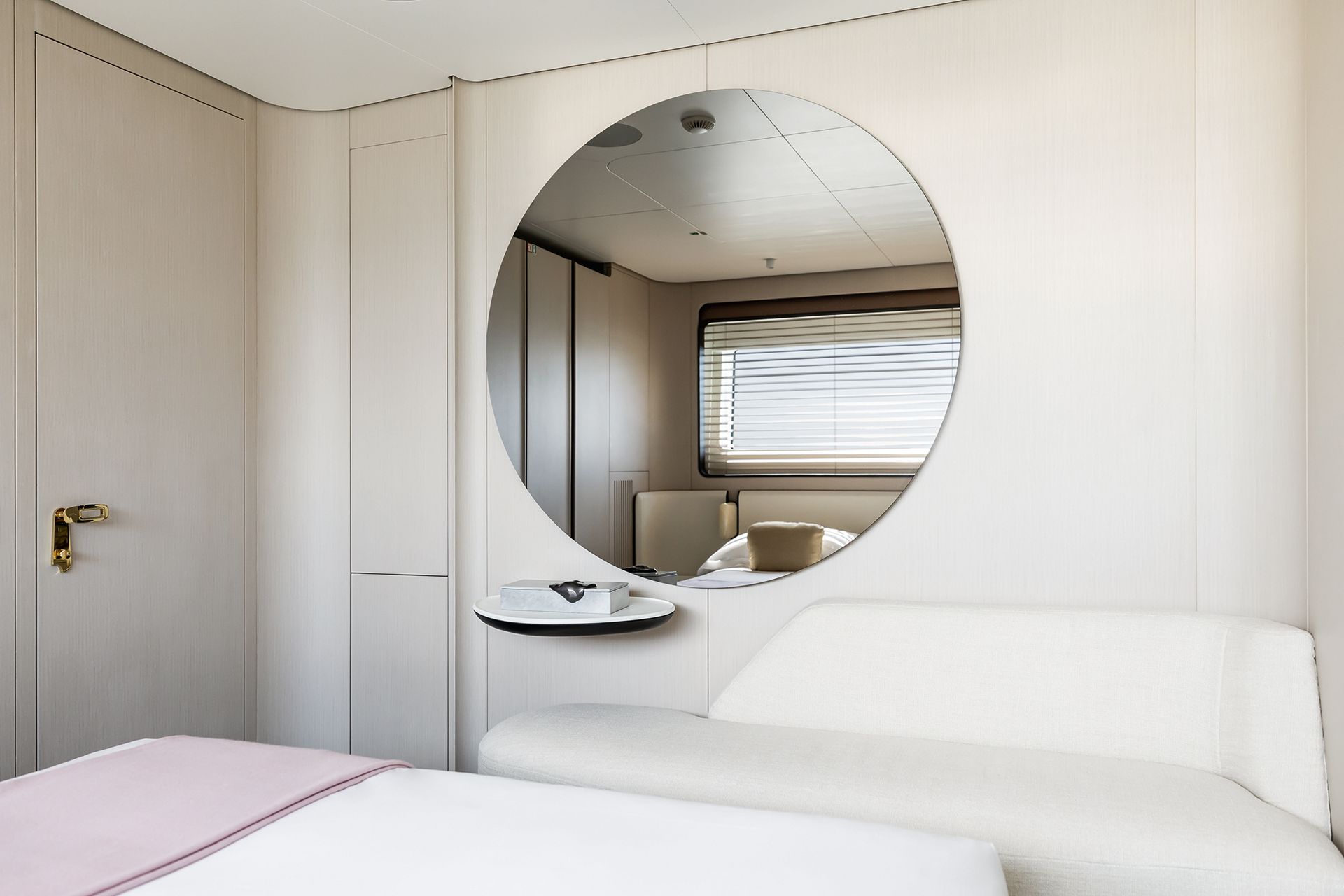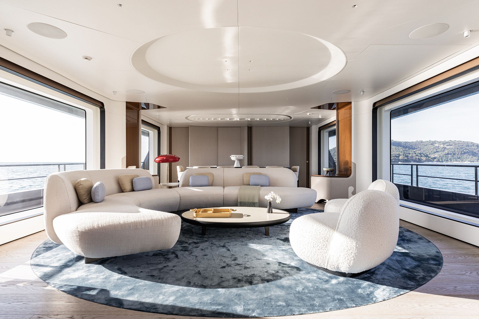 With her original design and modern ethos, the Azimut Grande 36M is a superyacht that synthesizes cutting- edge style and attitude. From the unprecedented semi- walkaround upper deck inspiring freedom of movement to the fully retractable side windows posing a special gateway to the sea, all elements contribute to visually blend interior and exterior spaces. A barrierless lifestyle naturally blurs the boundaries between onboard pleasure and oceanic greatness