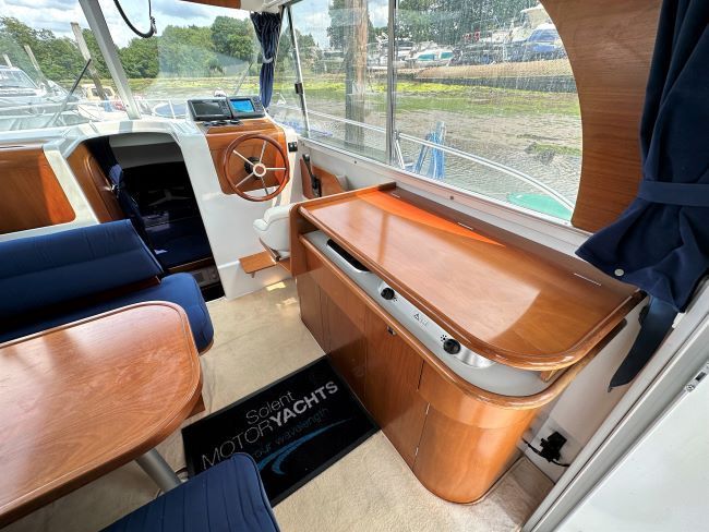 Ever popular craft for its wide side decks, large cockpit and comfortable performance at sea. The single Volvo diesel engine provides fast cruising speeds of about 18 knots with efficiency and a top speed of 22 knots. This example also benefits from having trim tabs and a bow thruster.