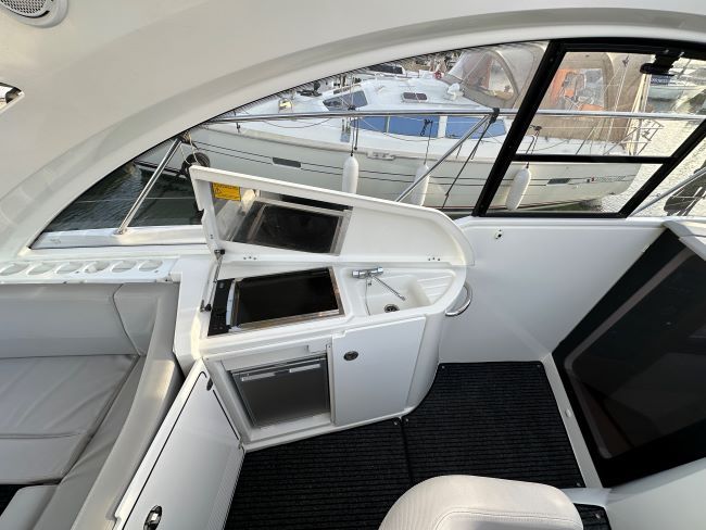 Cockpit wet bar with BBQ, fridge, sink and storage
