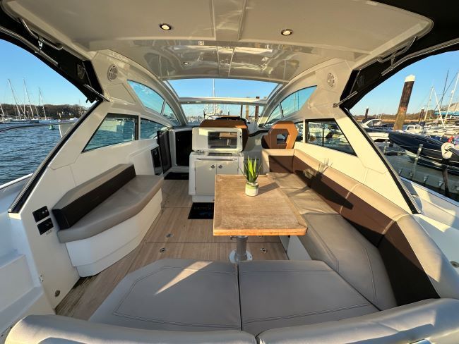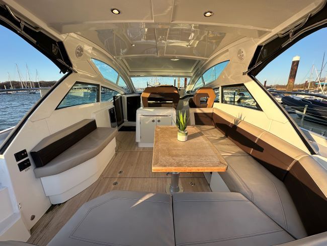 8 person cockpit with solid wood cockpit table (convertible to sun pad)