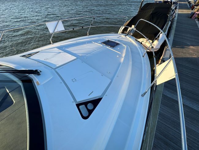 2 panoramic windows with opening portlights, opening deck hatch with mosquito blind