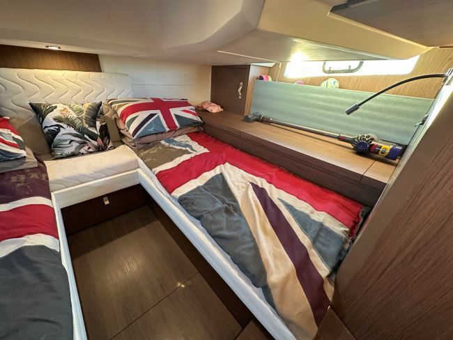 2 single berths which converts to one large double berth (0.7m x 1.95m, 2'4" x 6'5" or 1.4m x 1.95m, 4'7" x 6'5")