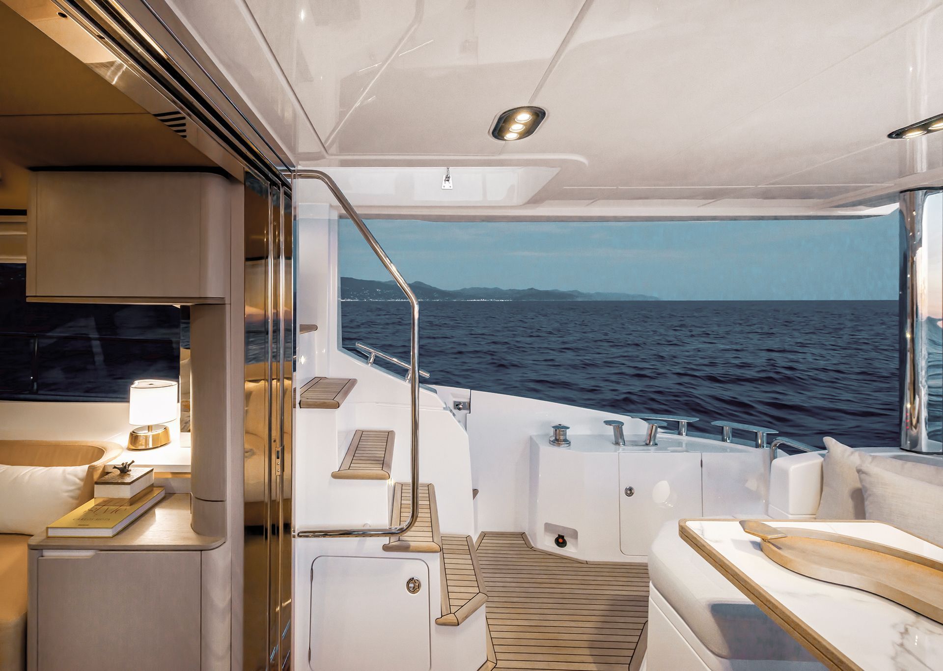 A yachting marvel of spacious abundance, the Fly 60 astonishes the senses by exploring the essence of a curated boutique hotel surrounded by endless ocean views. Intuitive designs inspire a welcoming and cleverly charming environment, elevated by refined interiors and unexpected spatial solutions.