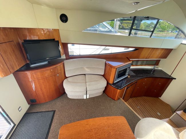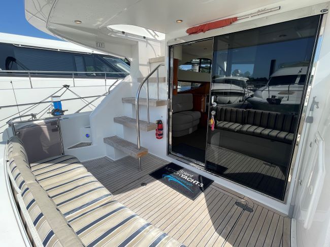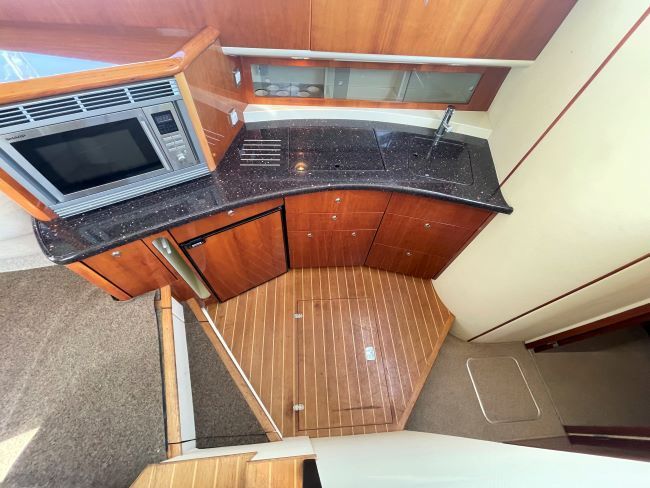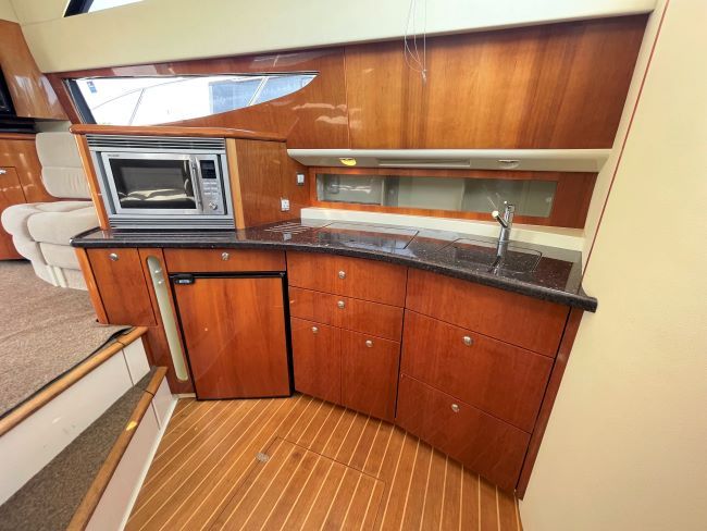 Flybridge wetbar with BBQ, fridge, sink and storage