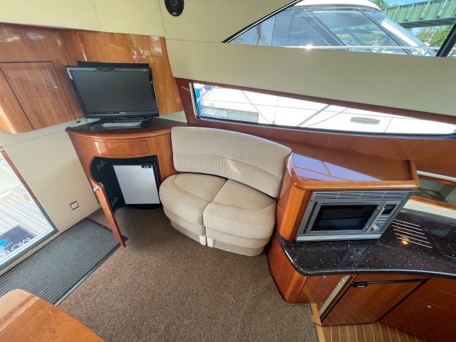 Port side entertainment unit with TV, digital, JVC radio/CD/DVD player and additional saloon fridge