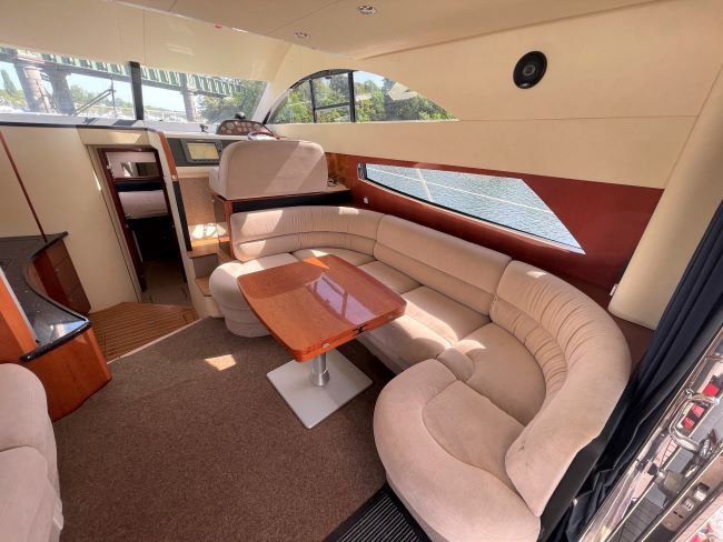 L-shaped saloon seating with two loose seats to port side