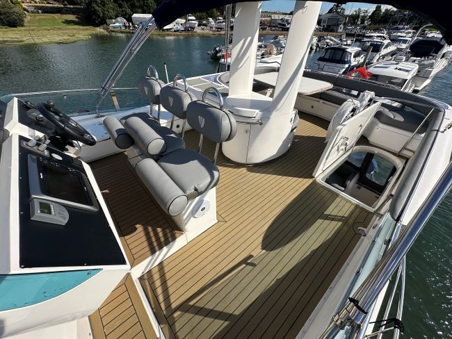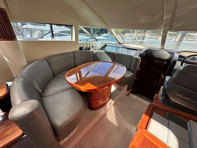 Spacious upper dinette with twin lower helm position - headlining's replaced across dinette and lower helm