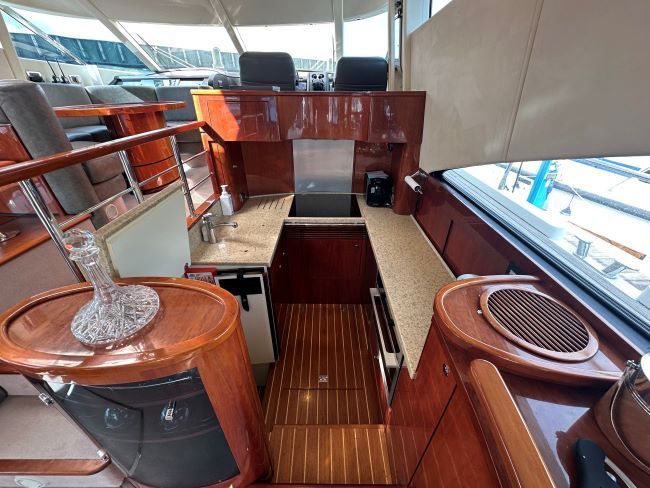 Flybridge wet bar with griddle, sink, fridge and icemaker