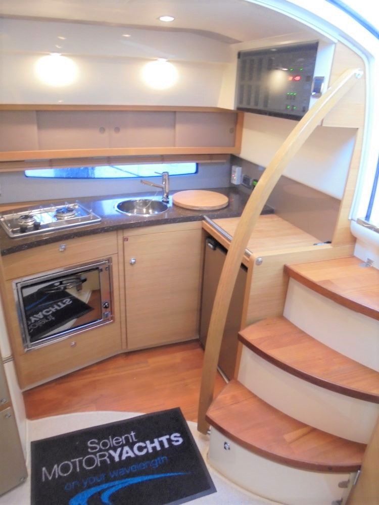 Comprehensive galley opposite saloon with Flat screen TV and Radio/CD player.