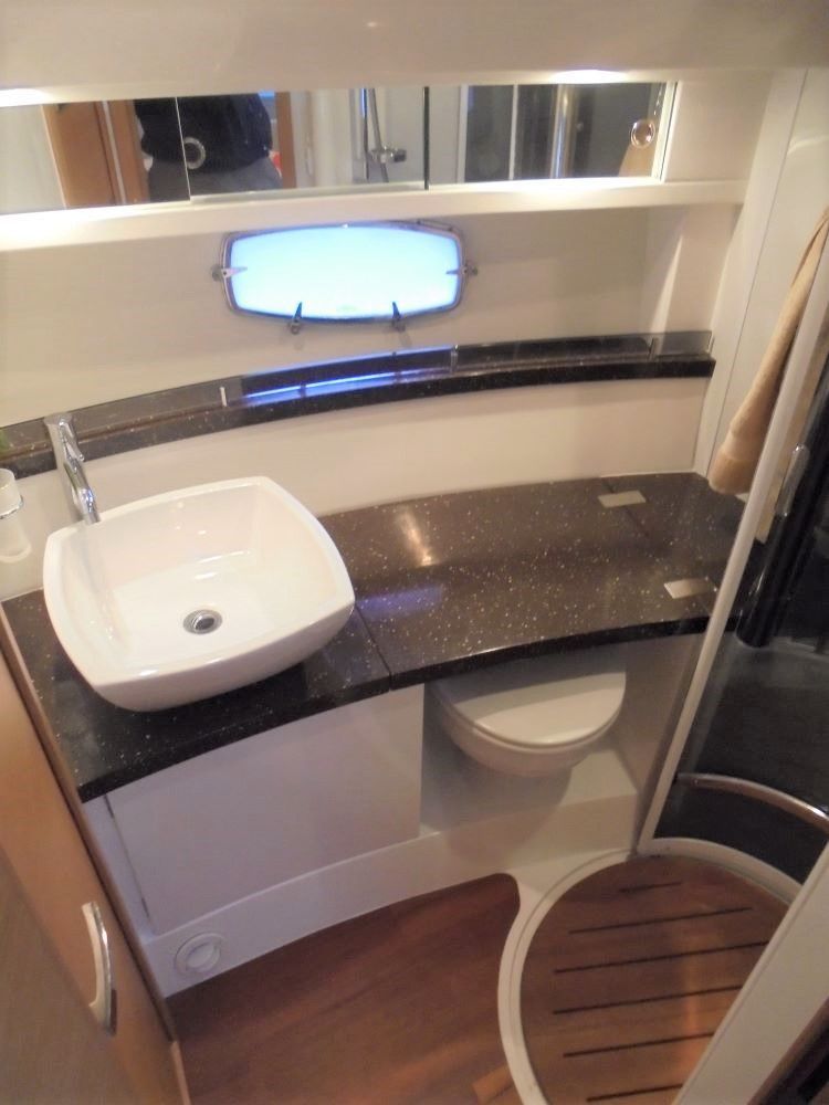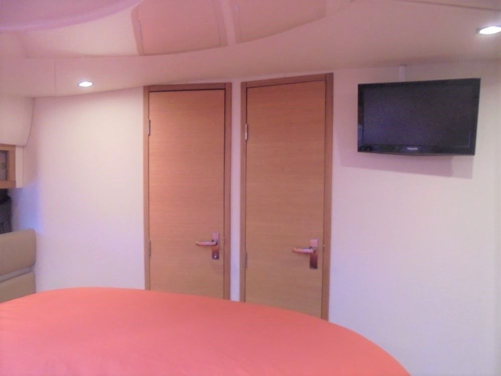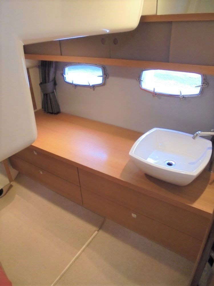 Double island forward master cabin with new custom made sprung mattress, plenty of storage, flatscreen TV and en-suite access to day head with separate shower.