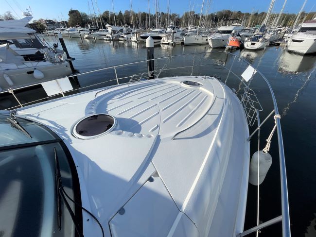 This example is beautifully presented with recent grey cockpit upholstery, cream leather interior upholstery combined with the light oak woodwork that is ready to cruise the south coast in style and comfort.