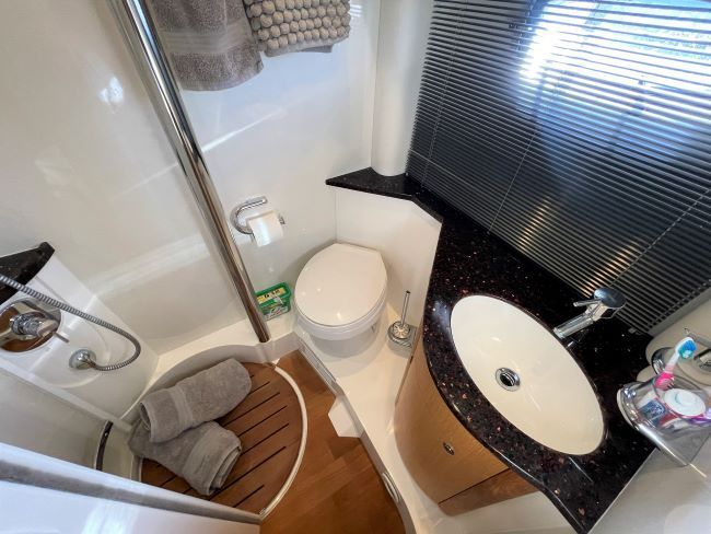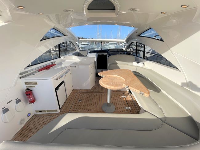 The Targa 47 GT has a large and sociable cockpit with the ever popular sliding hard top roof and luxurious twin en-suite accommodation.