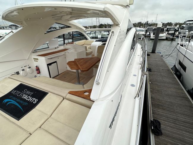 A fantastic opportunity to purchase a superb 2009 Fairline Targa 47 Gran Turismo Hard Top fitted with the classic Volvo Penta D9 500hp engines, serviced in May with a great specification including a bow and stern thrusters on remote to take the embarrassment out of mooring.