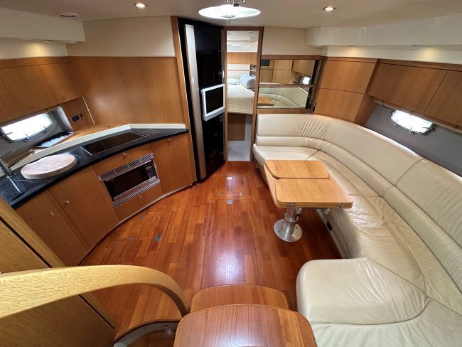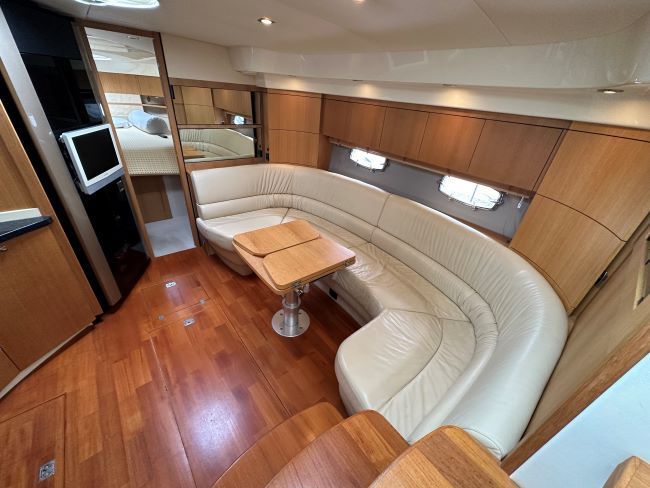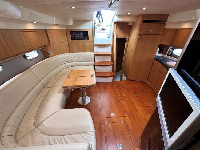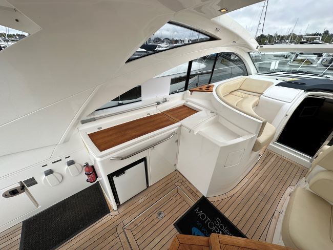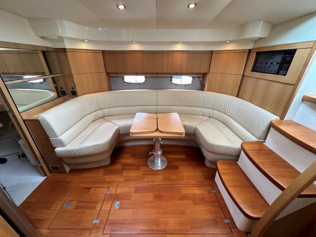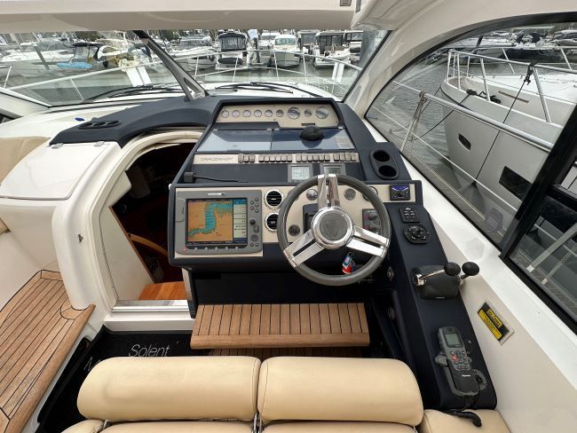 This example is beautifully presented with cream cockpit and interior upholstery and light oak woodwork that is ready to cruise the south coast in style and comfort.