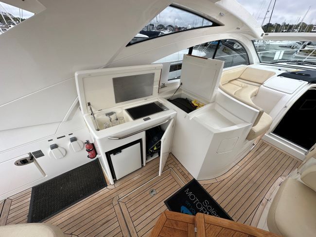Cockpit wetbar with sink, BBQ, fridge and storage