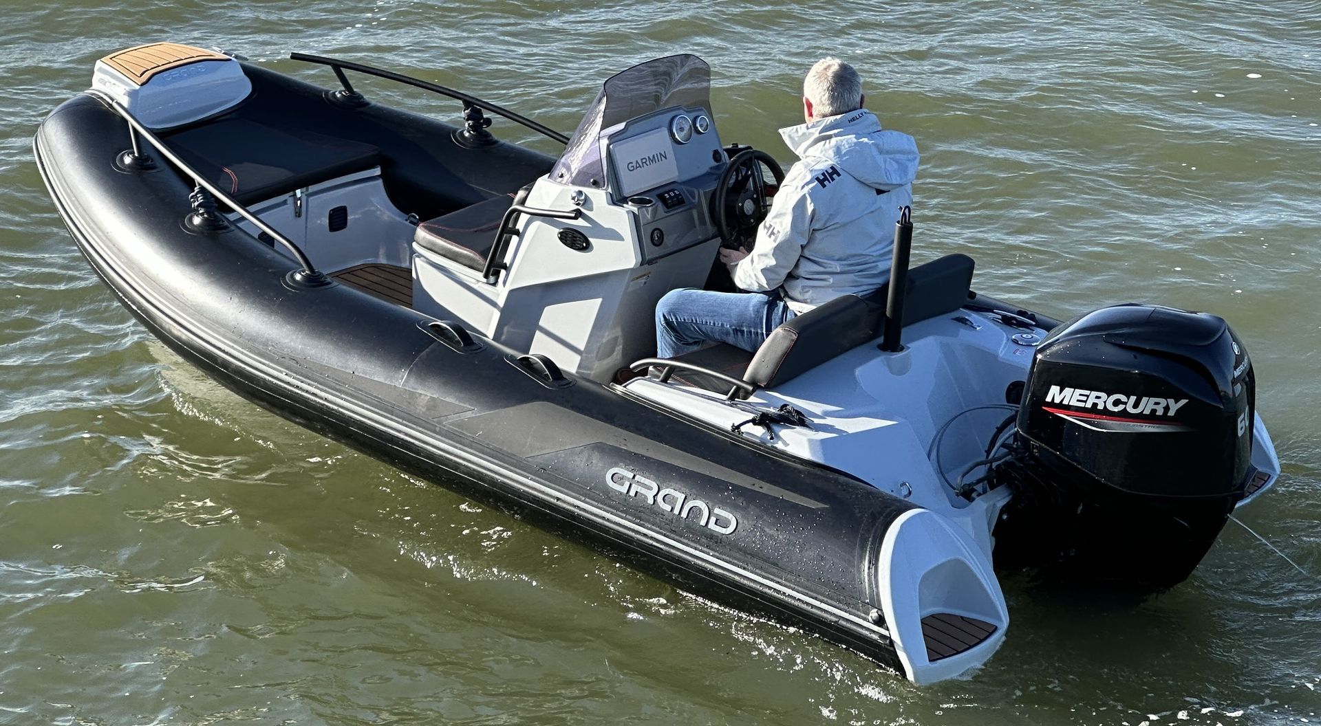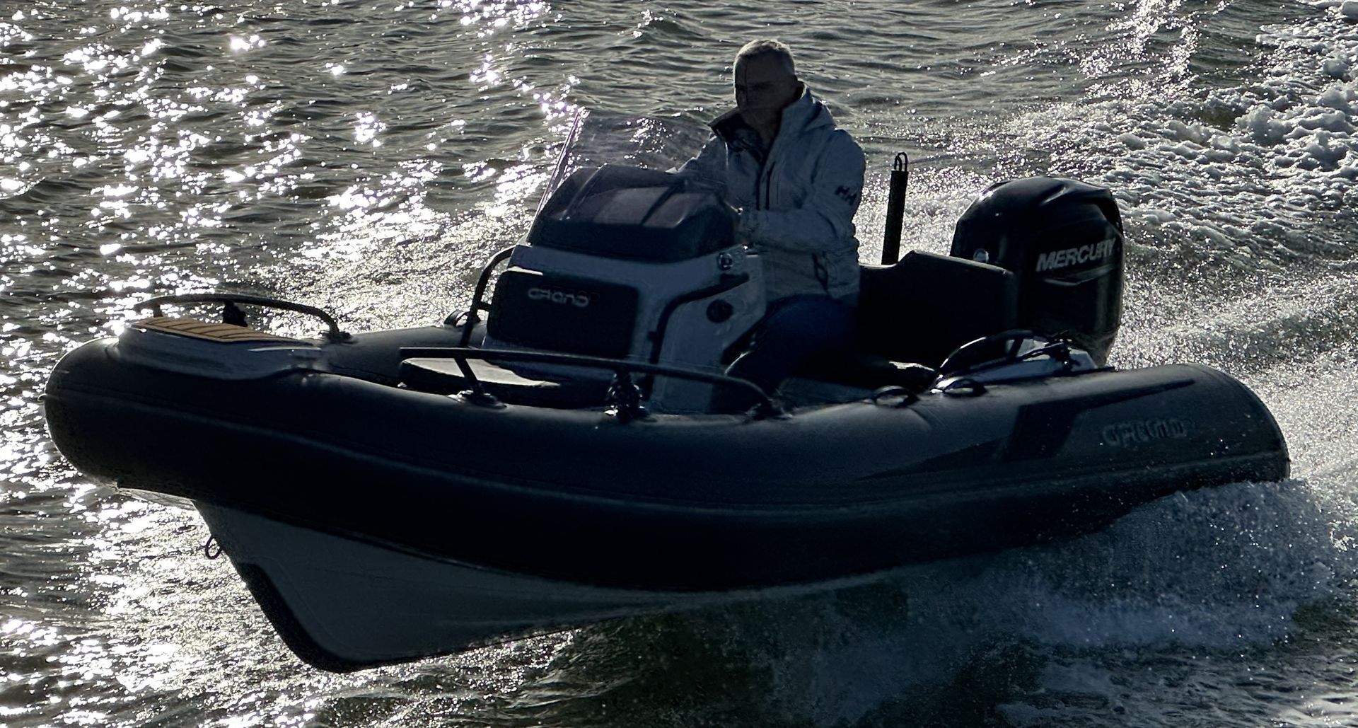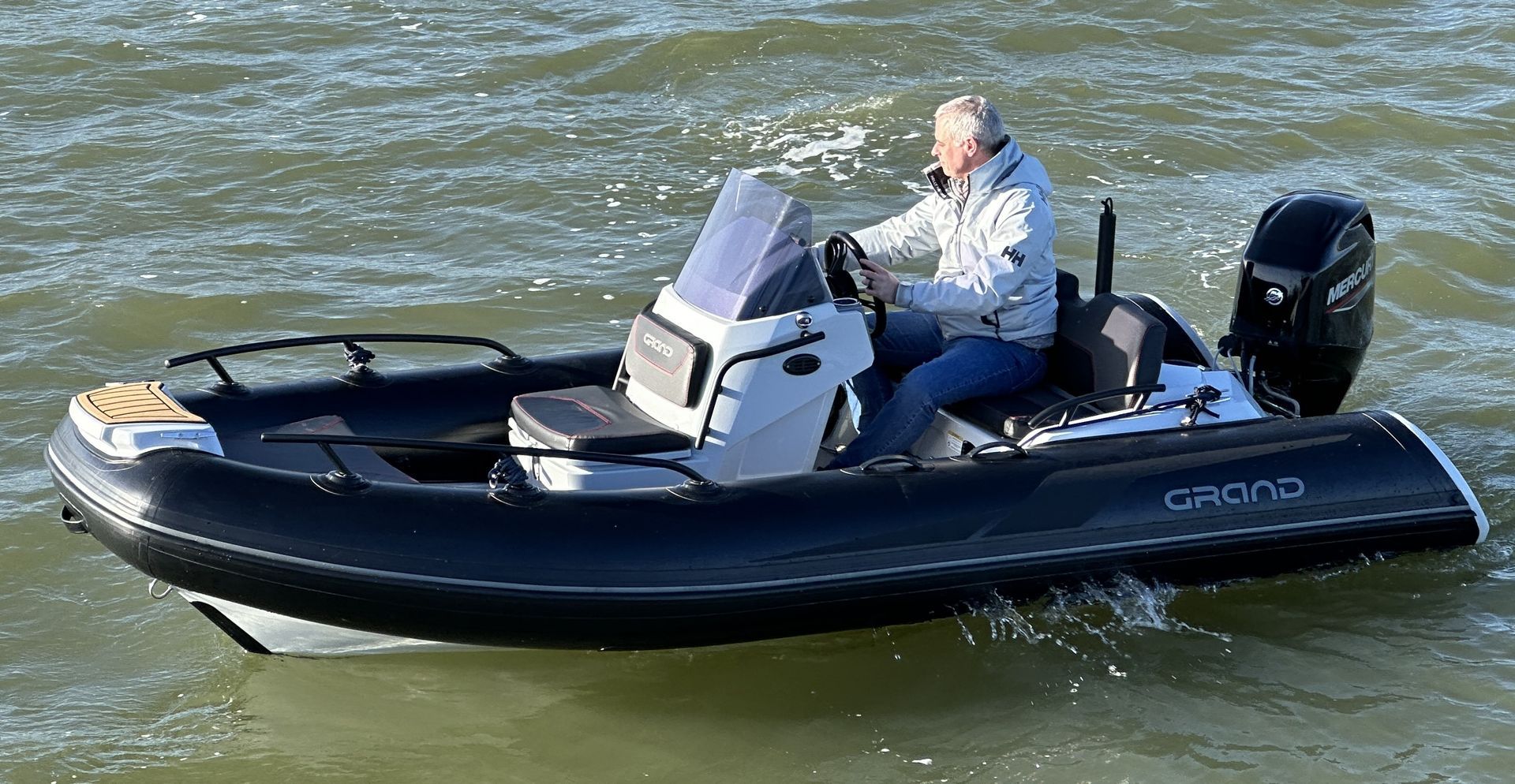 The Grand Golden Line GL420 RIB boasts all the features of a 6m RIB, in a compact and stunning package. This example has the largest engine option, being a Mercury 60hp on the back with a ski pole, bow sundeck kit and its’ huge stern locker and you have the perfect recipe for a family RIB.