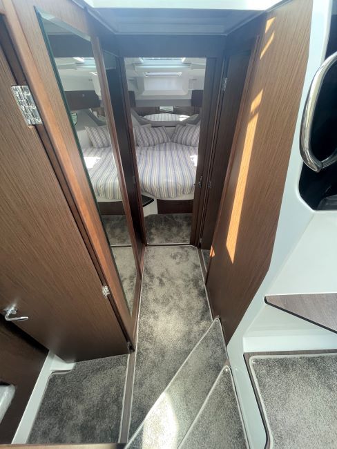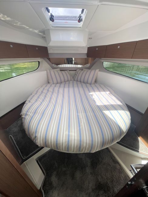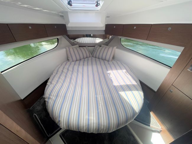 The Jeanneau Merry Fisher 1095 Fly Legende really has to be viewed to fully appreciate the ground breaking layout that offers 3 double cabins!