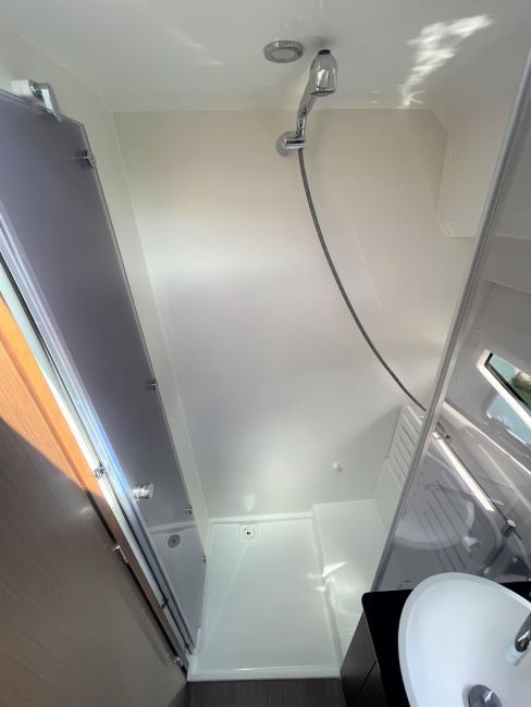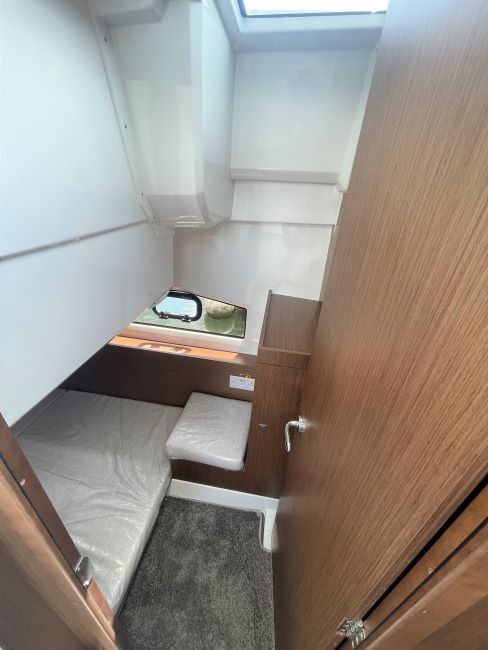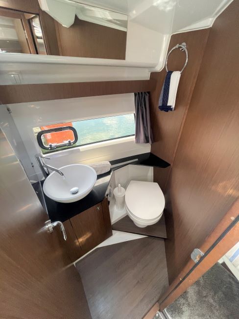 Below, in addition to the saloon, three cabins are available: a large and comfortable owner’s cabin, a guest cabin, and an innovative third cabin! This additional space, whether dedicated for storage or for additional sleeping space, enables you to customise your interior layout for cruising “à la carte!”