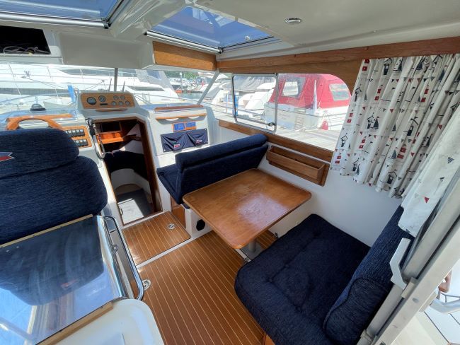 Spacious dining area to starboard with two sofas and table (table drops to convert into a double berth if required)
