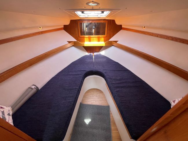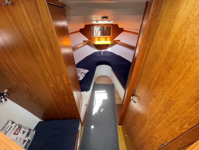 Double V-Berth with infill to comfortably sleep two