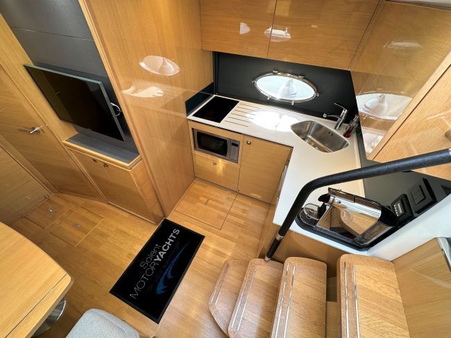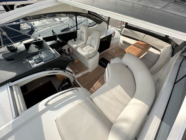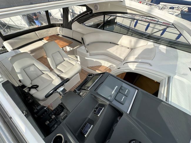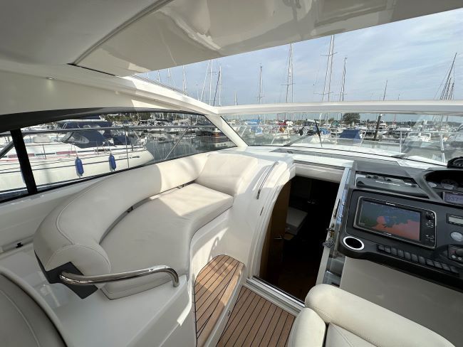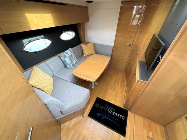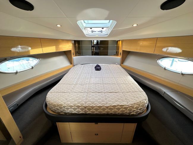 The Princess V39 delivers ultra-responsive handling and thrilling acceleration which is something to behold, especially with the sunroof open, creating over 5 square metres of open space, its a true open boating experience. When entertaining, the spacious and sociable cockpit enjoys a beautiful teak table and fully-equipped wetbar. Below deck, the well proportioned galley enjoys plentiful natural light and intelligent storage. The master cabin has impressive headroom, space and light, whilst the aft cabin with sliding berths to make a cosseting double. With hand-stitched detailing, handcrafted cabinetry and spacious accommodation, its a craft built without compromise.