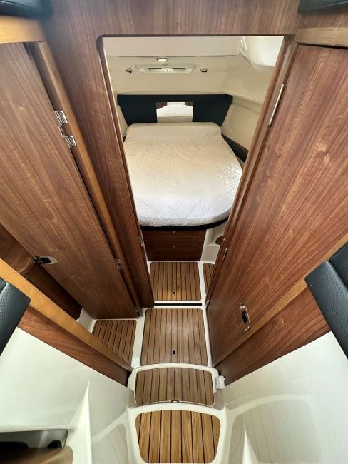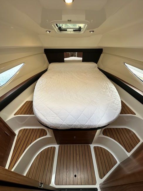 This example is powered by the ever efficient MerCruiser V6 TDi 260hp diesel engine with approx 185hrs, that has just been serviced with new anti-foul, anodes, polished and comes with all the extras you would want and more to make her ideal to cruise the South Coast in comfort for all the family.