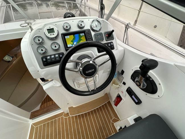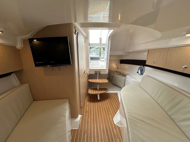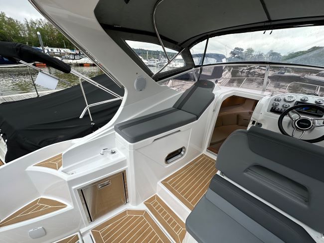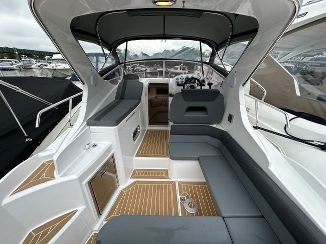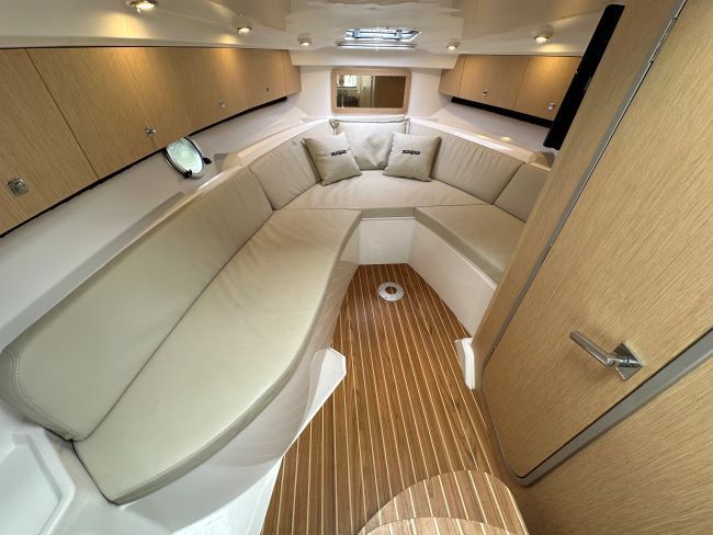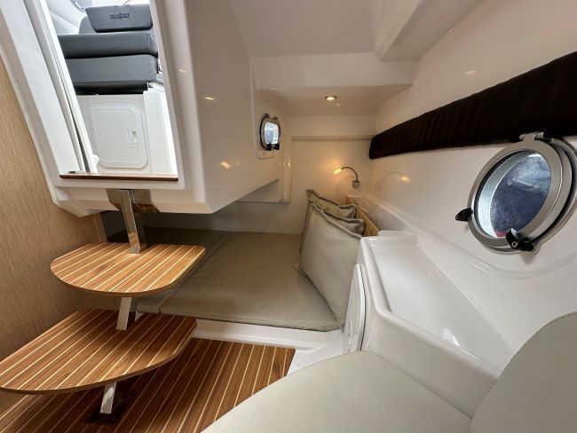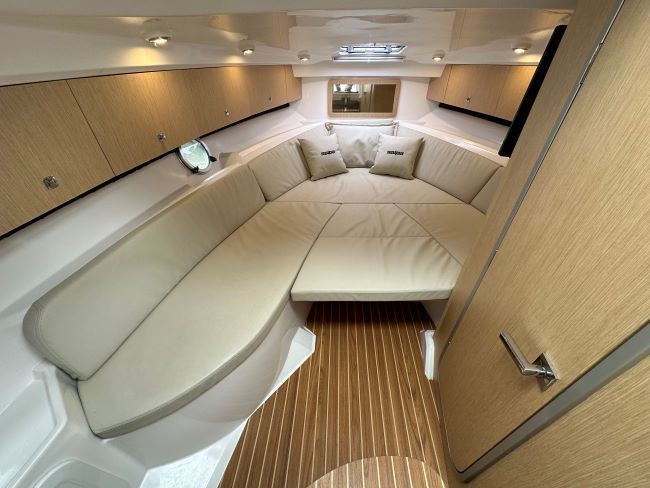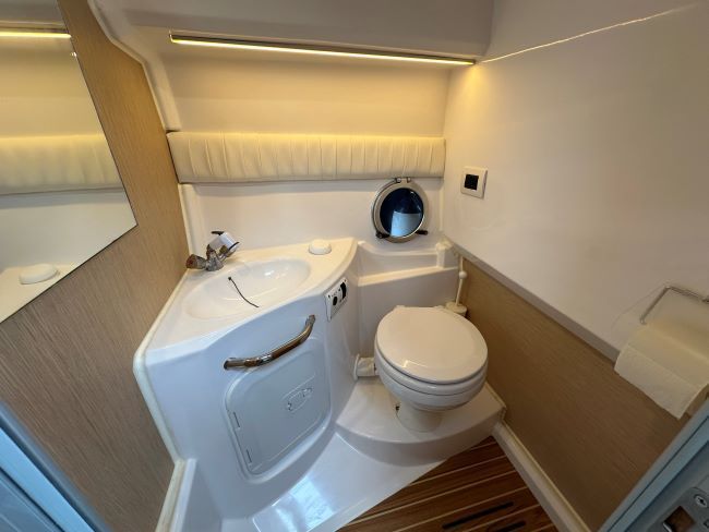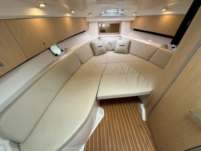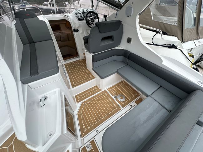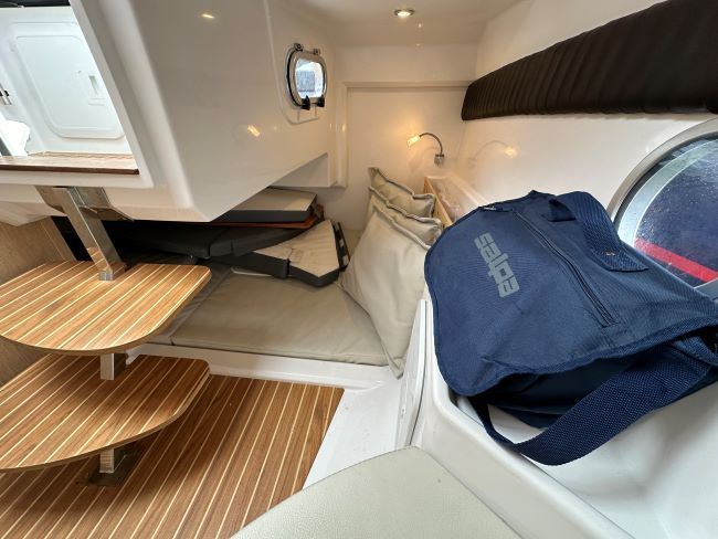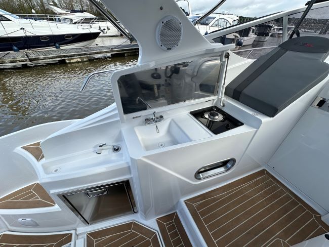 This Sporty Cruiser has all the ingredients to have a great time on the water with Fridge, Gas hob and an enclosed heads compartment featuring an electric Sea Toilet & Shower.