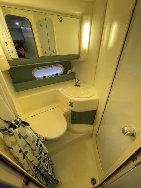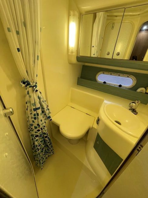 Gas oven, hob and grill, Sanyo microwave in aft cabin