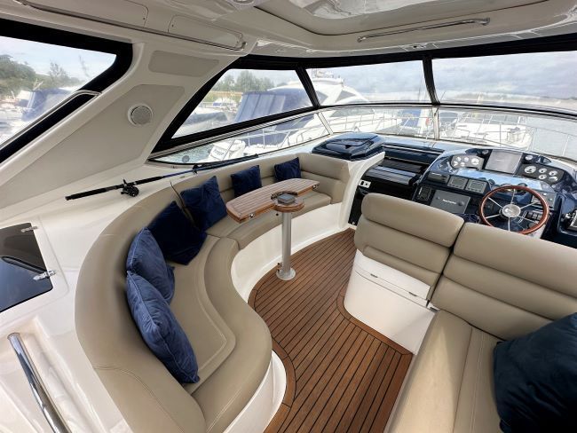 The Sealine S41 offers a unique and social cockpit with an unrivalled interior and full beam master en-suite cabin.