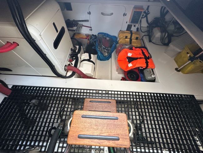 Side deck access hatch to port of helm