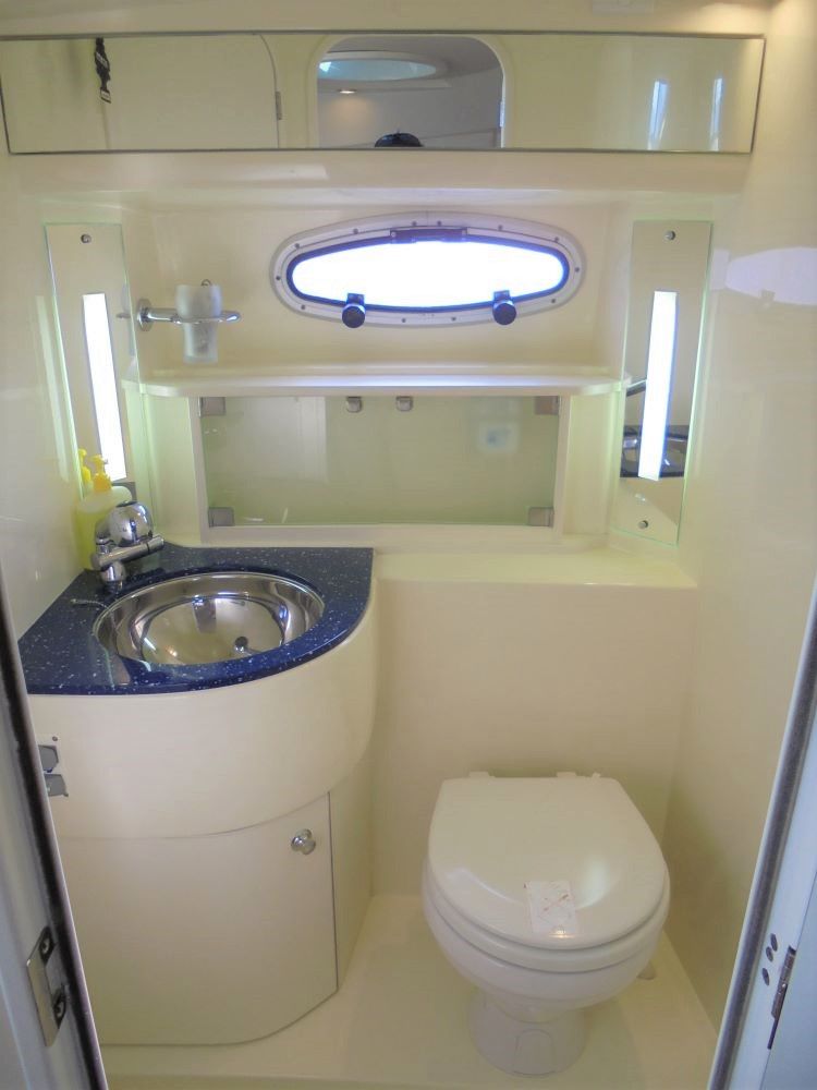 HEADS COMPARTMENT: to port with electric toilet, shower, handbasin with Corian surround, storage and shaver point.