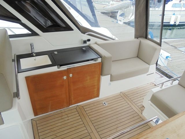 Cockpit wet bar with BBQ, fridge, sink and storage