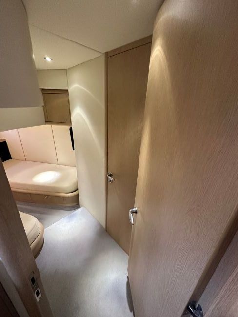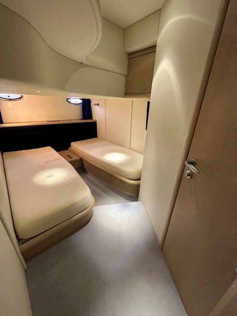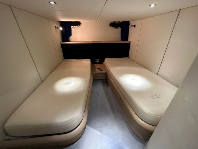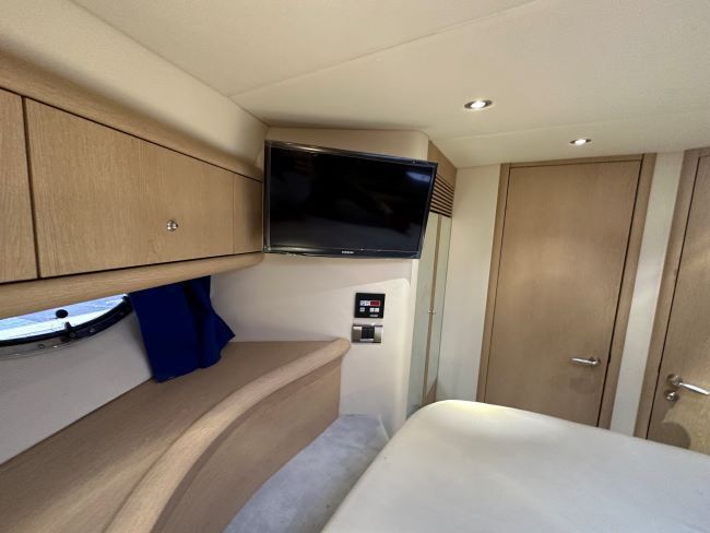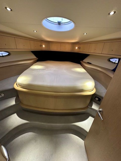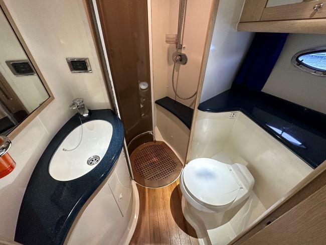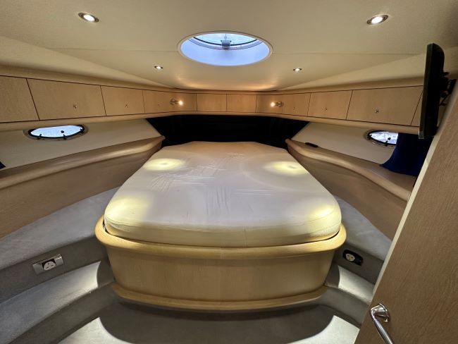 Spacious forward double berth master cabin forward with plenty of storage TV/DVD private ensuite toilet & separate shower stall.
